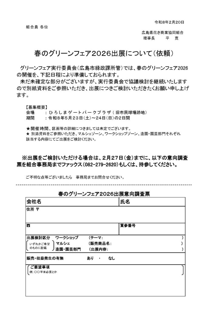 春のグリーンフェア2026出展意向調査票(依頼文書)のダウンロードはこちらから